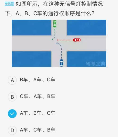 车,其次是左转弯的B车,最后才是右转弯的C车。